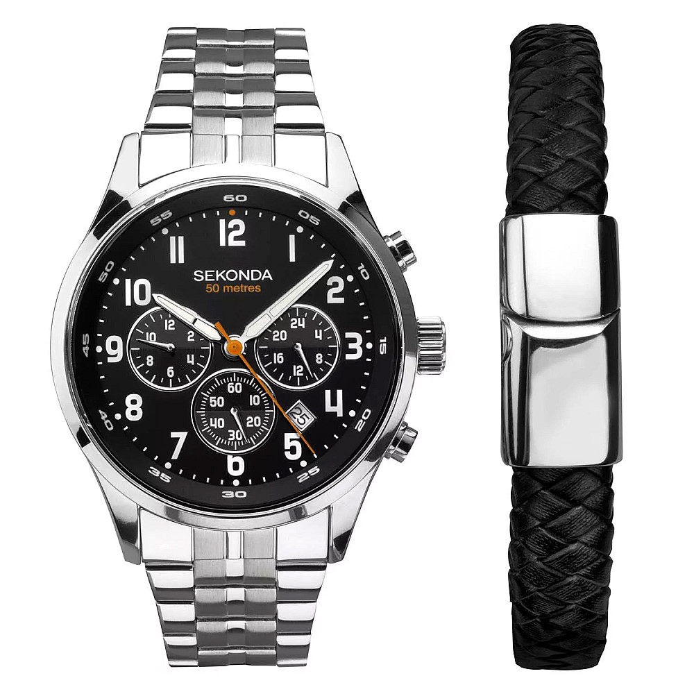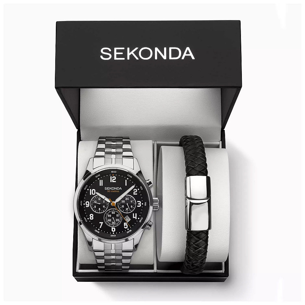 Комплектът включва: 1 бр. мъжки часовник Sekonda, 1 бр. мъжка гривна