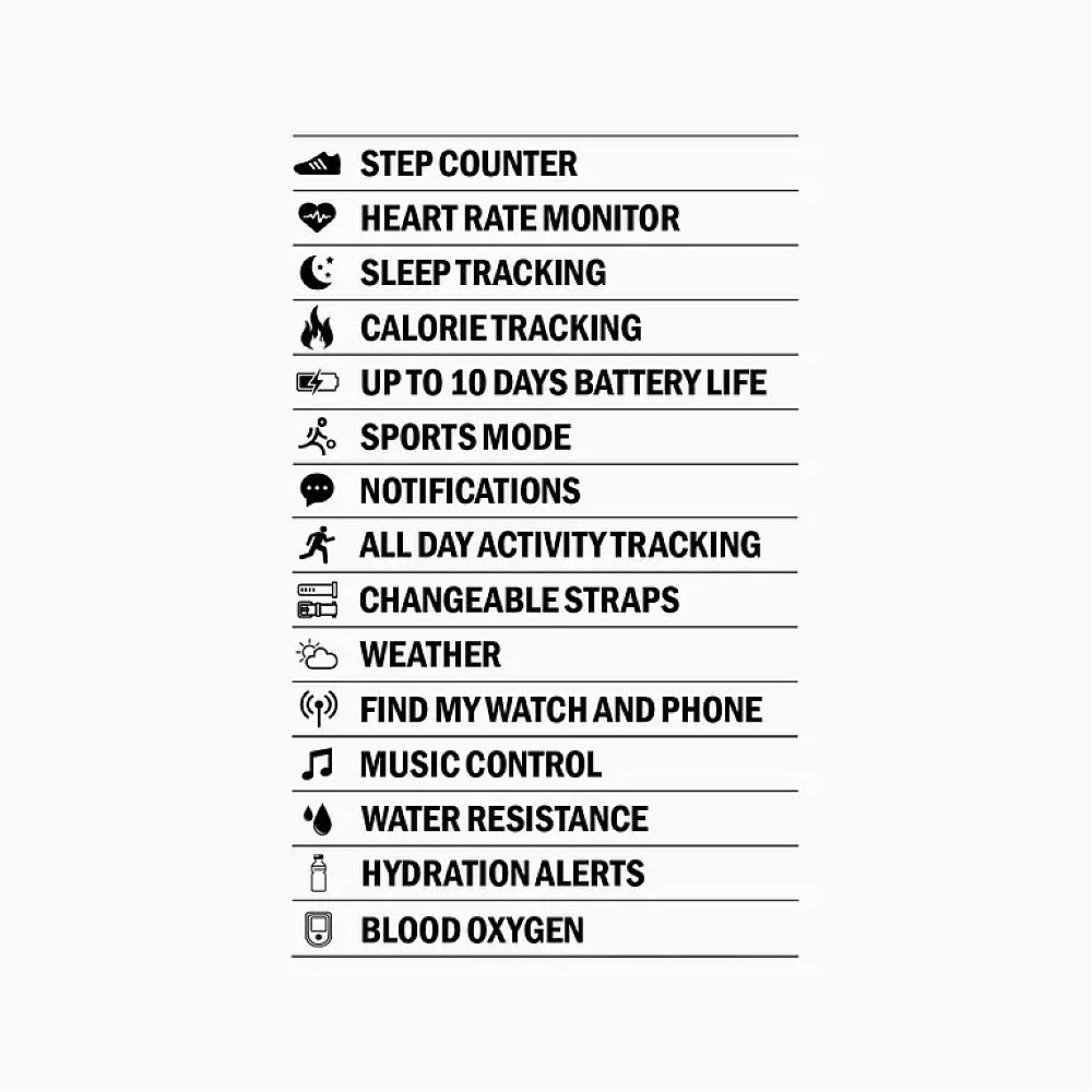 Водоустойчивост: IP68. Часовникът е устойчив на пръски вода, но не се препоръчва за плуване или водни спортове